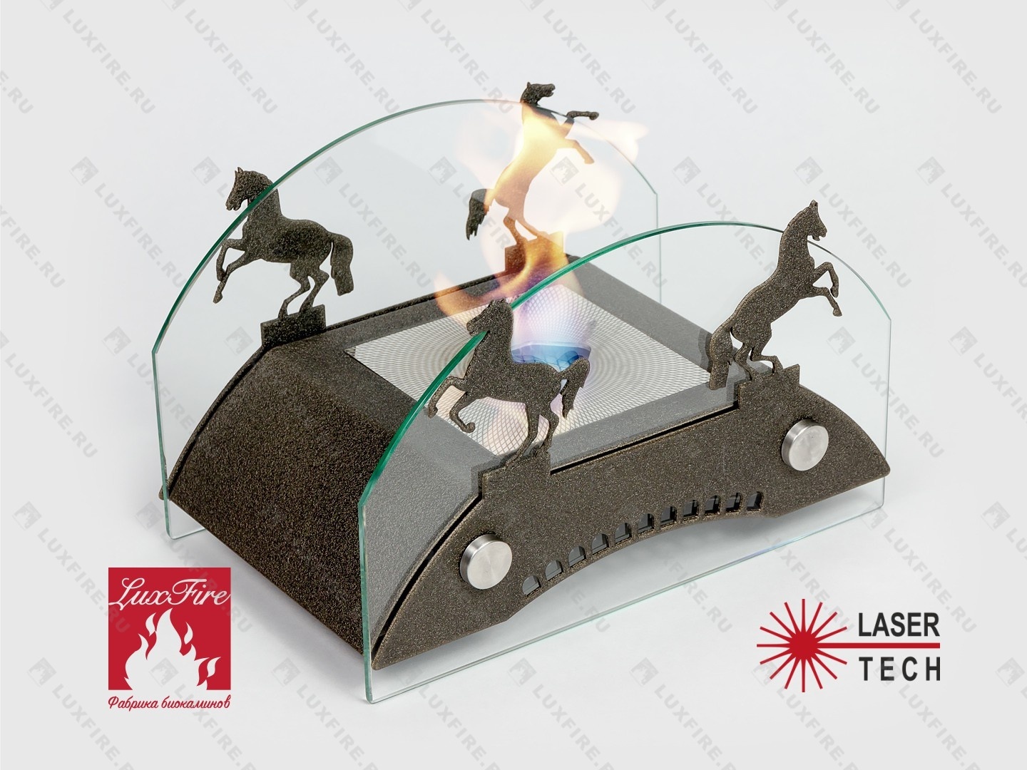 Представляет собой биокамин, который создан по мотивам мостов дореволюционной России середины ХIX-начала XX века и состоит из металлического корпуса с топливным блоком Lux Fire 100-1 огражденным с двух сторон скругленными защитными стеклами на дистанционных держателях и декоративными металлическими накладками в виде «Коней»
